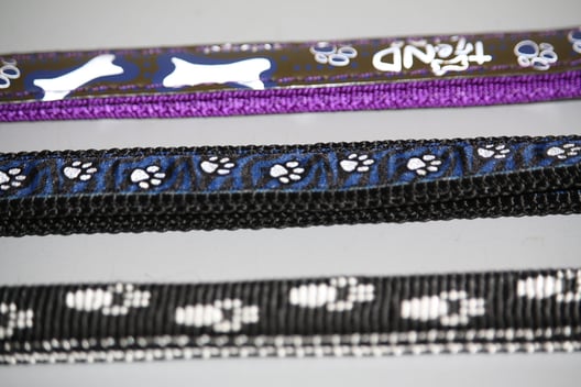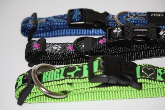Leuchthalsbänder, reflektierende Halsbänder und passende Leinen.